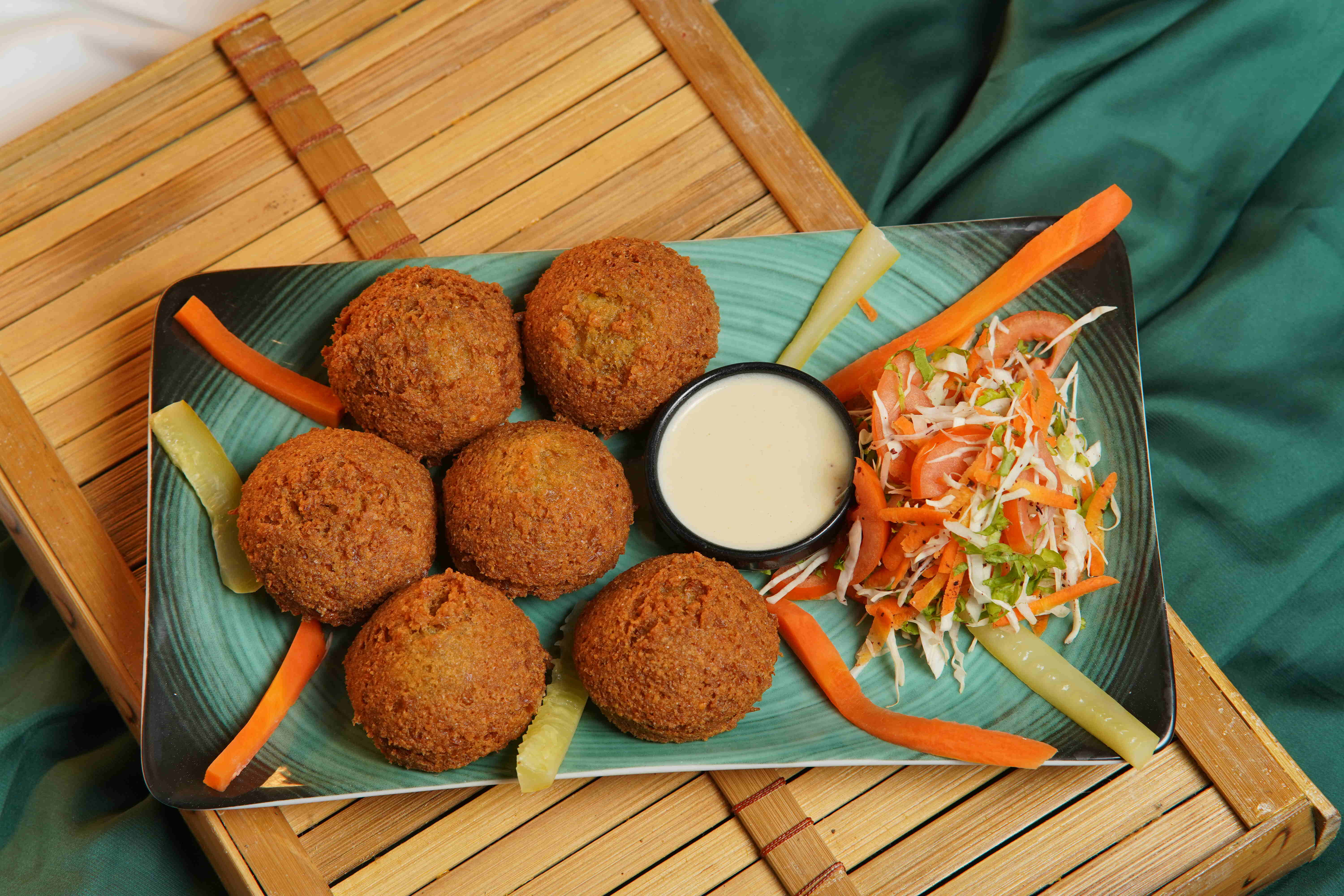Prepared with toasted or fried pieces of khubz combined with mixed greens, other vegetables, such as radishes & tomatoes.
